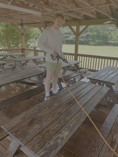 - Pressure-washed the picnic tables and replaced the ceiling fans before the churchwide picnic, please see image below.